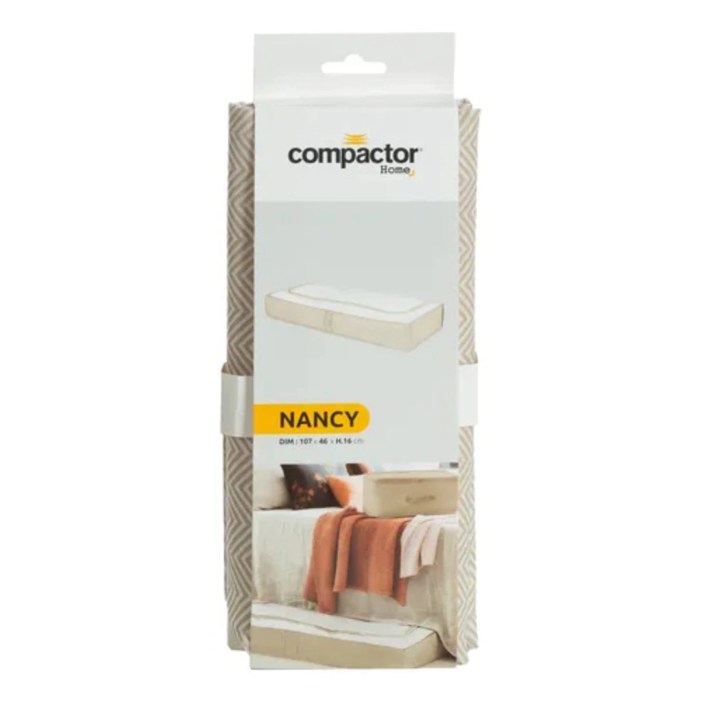 Desliza el caos bajo tu cama con este ingenioso organizador bajo cama Nancy de Compactor que transforma ese espacio en un oasis de orden. Flexible y ligero, con cierre y tapa transparente para fácil visualización. Su material permite el paso del aire pero no del polvo.